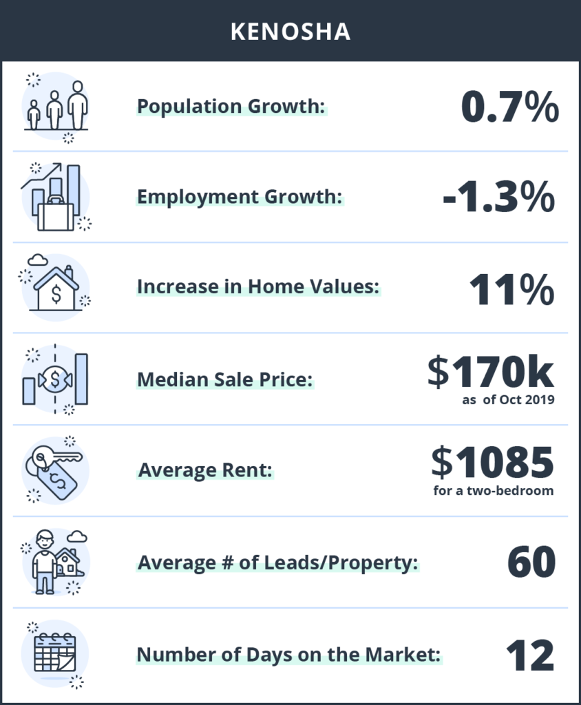 Madison is the state capital as well as the second largest city after Milwaukee. Madtown is home to the University of Wisconsin-Madison – Go Badgers! Madison is number #1 on our list, and it has made #1 on quite a few other lists: NerdWallet ranked it the #1 “Greenest City in America,” Yahoo.com said it was one of “The Best Cities on Earth for Biking,” and USA Today said it was the #1 “Best College Football Town.” Madison reported positive gains across the board-population growth is up 3.1%, employment growth at 1.1% and home values have increased 9.6% year over year. The median listing price is $258k with strong average rent prices at $1265. The number of leads per property is nearly 70 with under two weeks on the market. You would be mad not to invest in Madison, our number one rental investment pick in Wisconsin.